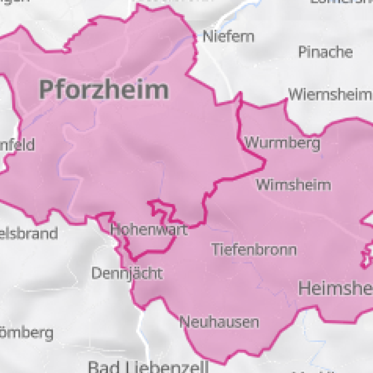 - Gemeinden Heimsheim, Mönsheim, Friolzheim, Wimsheim, Wurmberg, Tiefenbronn, Neuhausen mit je allen Ortsteilen